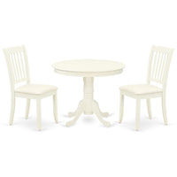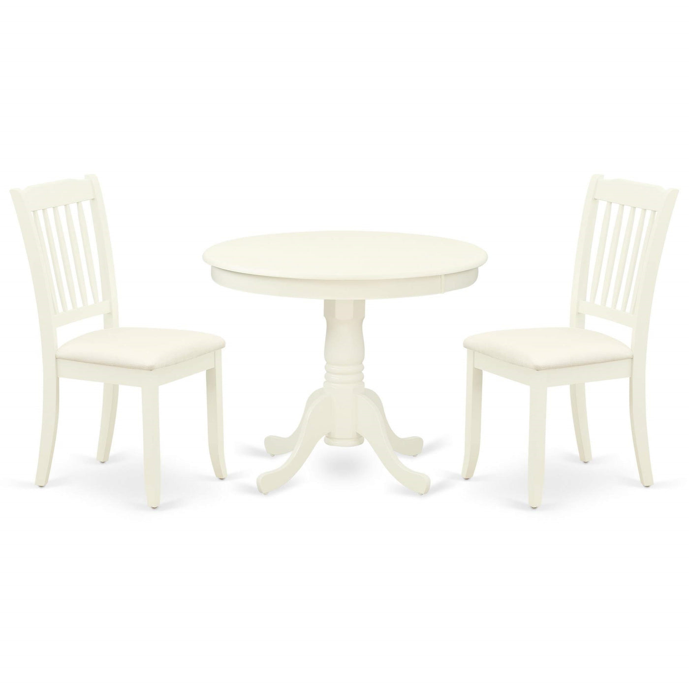 Casafoyer Anda3-Lwh-C 3 Piece Kitchen Table & Chairs Set Contains A Round Dining Room Table With Pedestal And 2 Linen Fabric Upholstered Dining Chairs, 36X36 Inch, Linen White