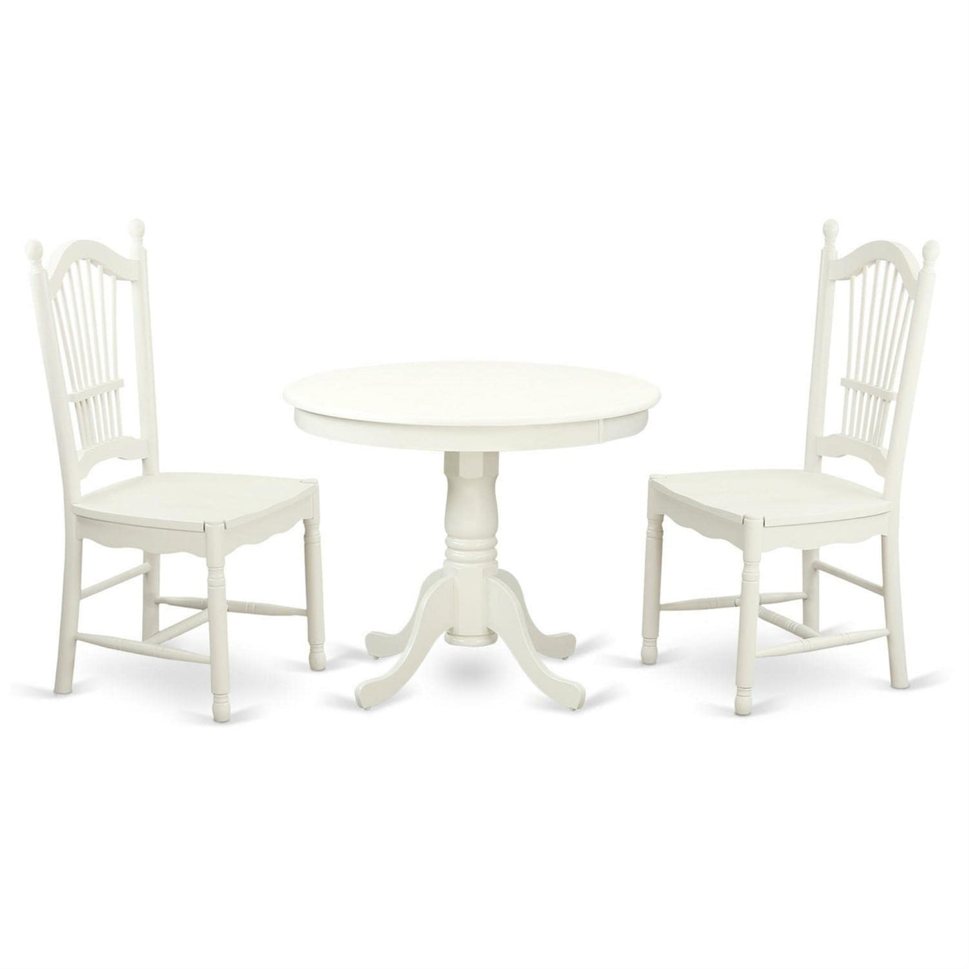 Casafoyer Ando3-Lwh-W 3 Piece Dinette Set For Small Spaces Contains A Round Kitchen Table With Pedestal And 2 Dining Chairs, 36X36 Inch, Linen White