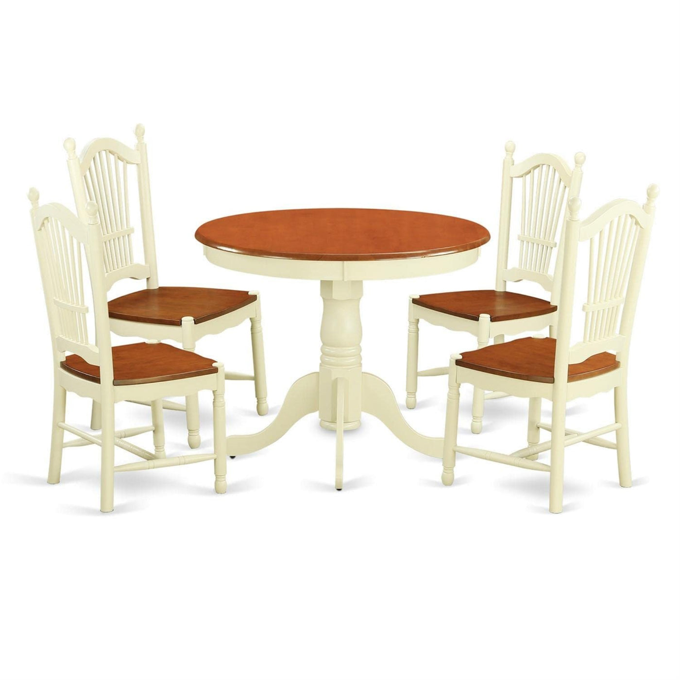 Casafoyer Ando5-Whi-W 5 Piece Dining Room Furniture Set Includes A Round Kitchen Table With Pedestal And 4 Dining Chairs, 36X36 Inch, Buttermilk & Cherry