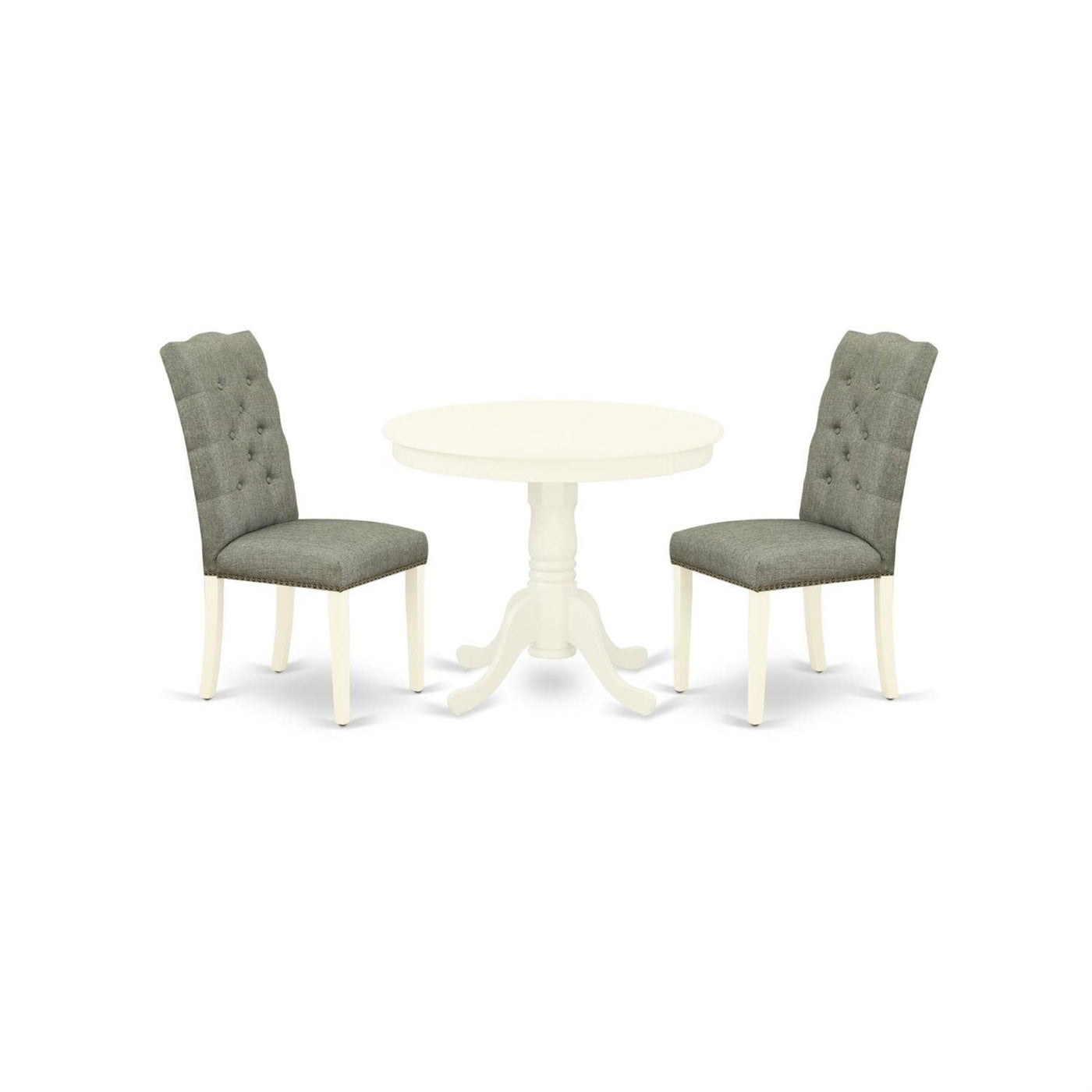 Casafoyer Anel3-Lwh-07 3 Piece Modern Dining Table Set Contains A Round Kitchen Table With Pedestal And 2 Smoke Linen Fabric Upholstered Parson Chairs, 36X36 Inch, Linen White
