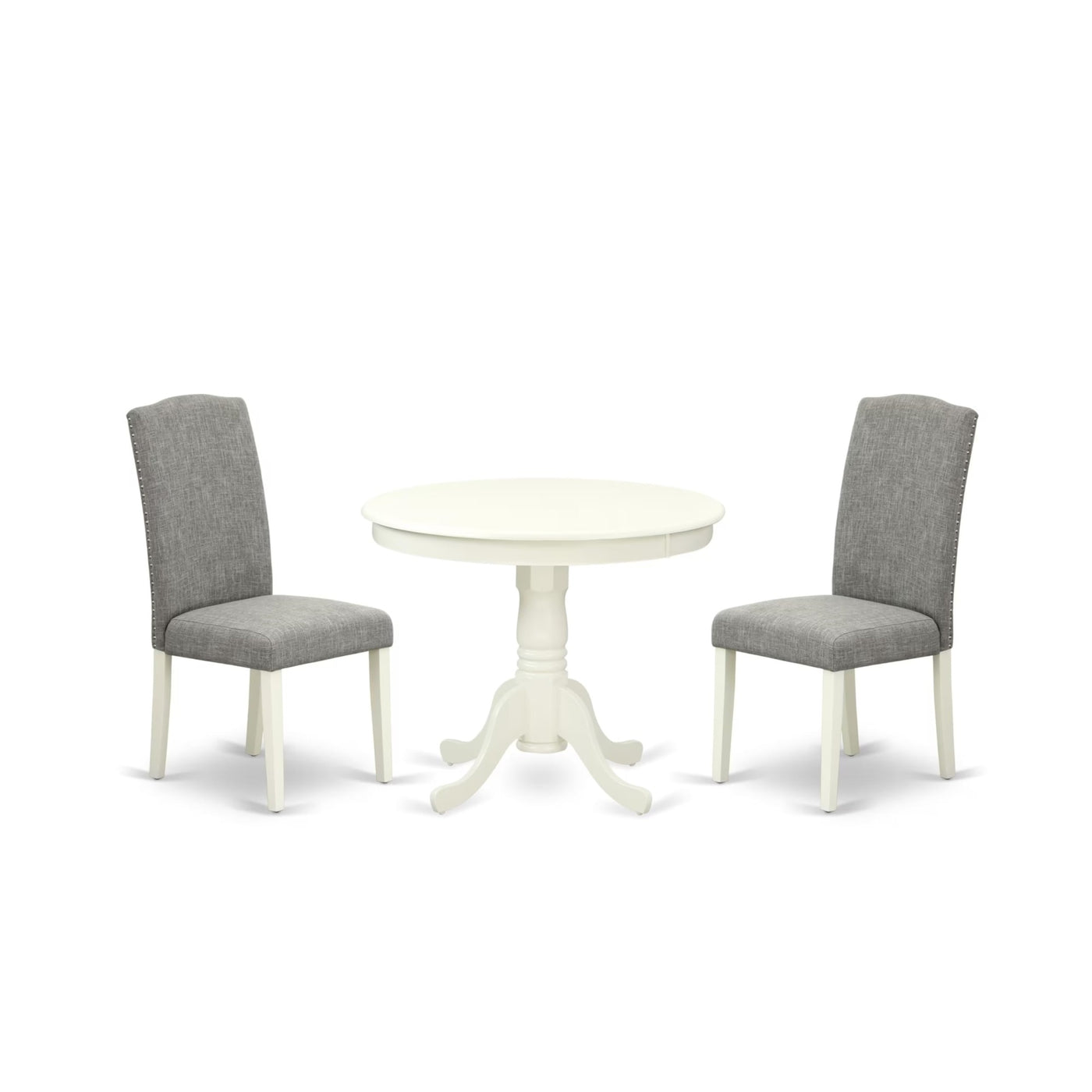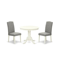 Casafoyer Anen3-Lwh-06 3 Piece Kitchen Table Set Contains A Round Dining Table With Pedestal And 2 Dark Shitake Linen Fabric Parson Dining Room Chairs, 36X36 Inch, Linen White