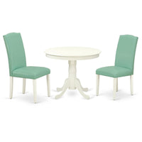 Casafoyer Anen3-Lwh-57 3 Piece Dinette Set For Small Spaces Contains A Round Kitchen Table With Pedestal And 2 Pond Faux Leather Parson Dining Chairs, 36X36 Inch, Linen White