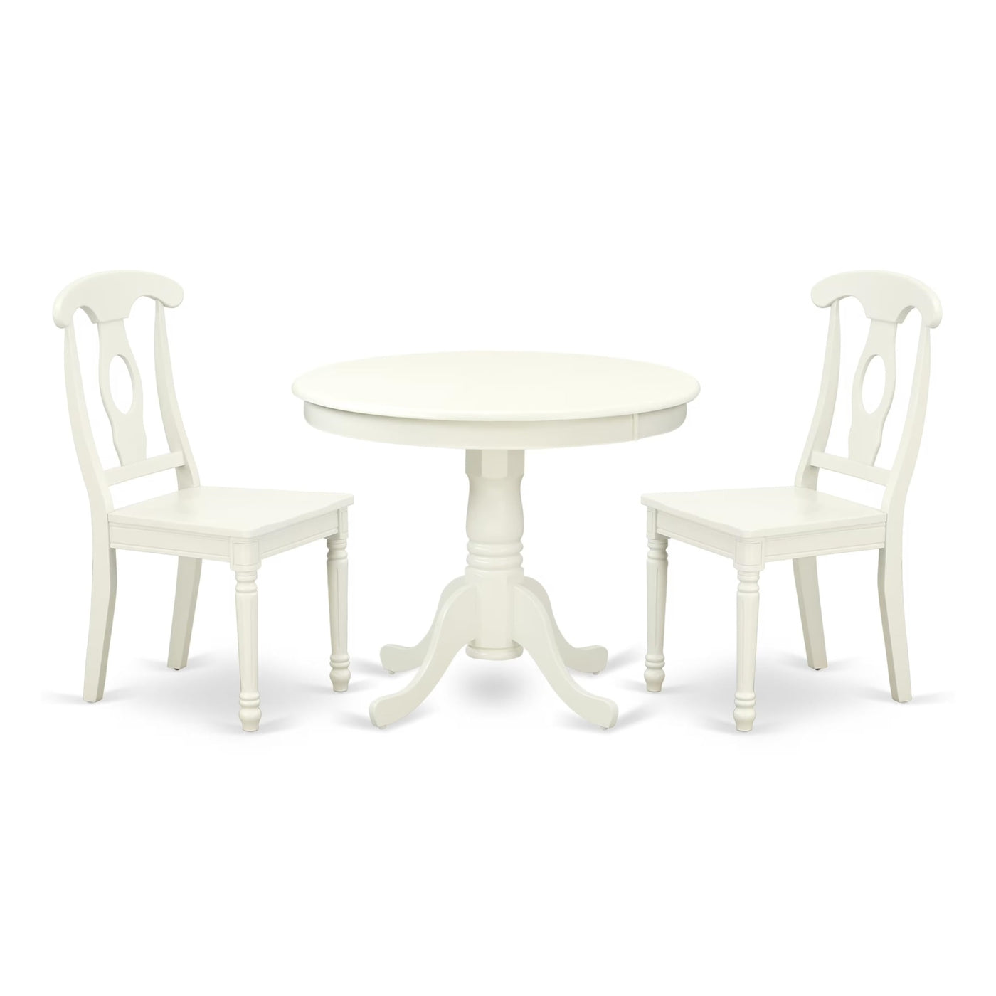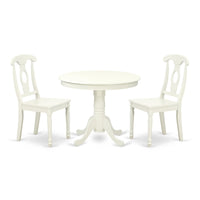 Casafoyer Anke3-Lwh-W 3 Piece Dining Room Table Set Contains A Round Kitchen Table With Pedestal And 2 Dining Chairs, 36X36 Inch, Linen White