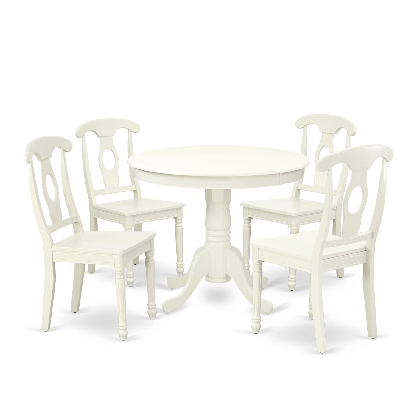Casafoyer Anke5-Lwh-W 5 Piece Dinette Set For 4 Includes A Round Kitchen Table With Pedestal And 4 Dining Chairs, 36X36 Inch, Linen White