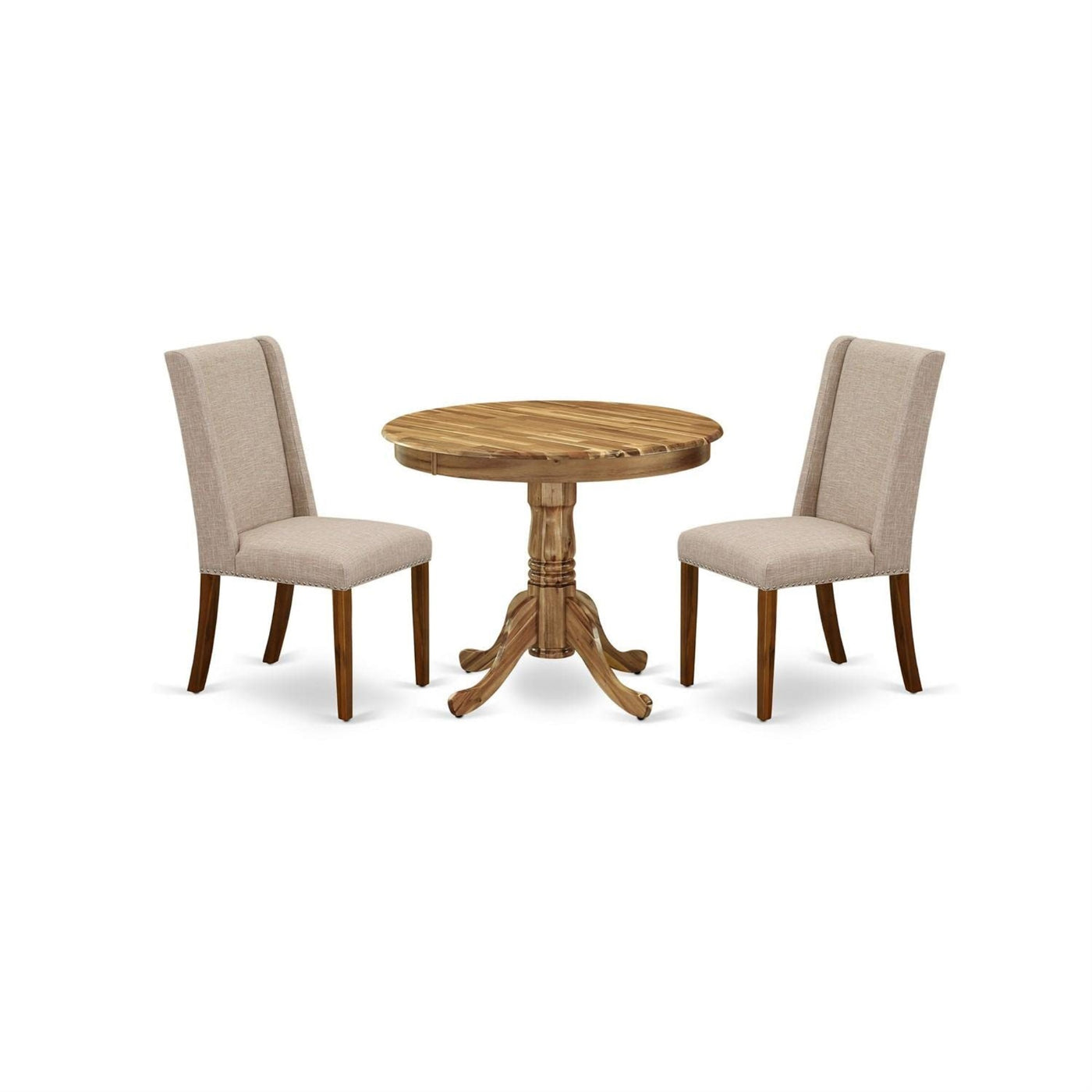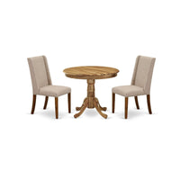 Casafoyer Antique 3 Piece Kitchen Set Contains A Round Dining Room Table With Pedestal And 2 Light Tan Linen Fabric Upholstered Chairs, 36X36 Inch, Anfl3-Ana-04