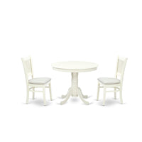 Casafoyer Anva3-Lwh-C 3 Piece Dining Table Set For Small Spaces Contains A Round Kitchen Table With Pedestal And 2 Linen Fabric Kitchen Dining Chairs, 36X36 Inch, Linen White