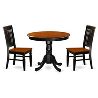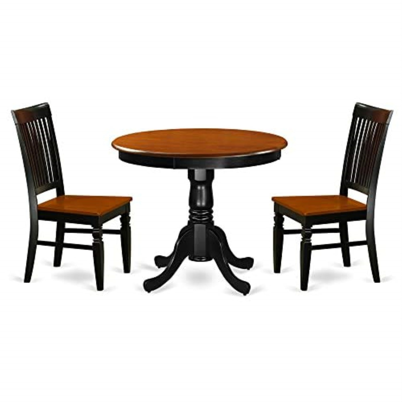 Casafoyer Anwe3-Bch-W 3 Piece Dining Set Contains A Round Dining Room Table With Pedestal And 2 Wood Seat Chairs, 36X36 Inch, Black & Cherry