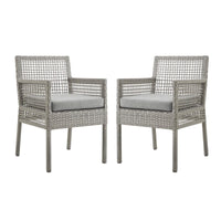Weave Conversational Threads Into A Rollicking Good Time With Aura Outdoor Patio Dining Chair. Aura Comes With A Synthetic Gray-On-Gray Tone Wicker Rattan Weave And A Powder-Coated Aluminum Frame That Delivers A Softly Versatile Outdoor Collection That Shifts To Meet The Needs Of The Moment. Outfitted With A Machine Washable And Fade Resistant All-Weather Fabric Cushion, Aura Will Make Your Outdoor Spot The Focal Point Of Good Memories And Festive Gatherings While Enhancing Your Patio, Backyard Or Poolside Arena. Complete With Non-Marking Foot Caps, Enjoy Spacious Seating And Enhanced Comfort With This Reliable Piece Of Outdoor Furniture.Set Includes:Two - Aura Dining Armchair