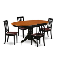Casafoyer Avat5-Blk-Lc 5 Piece Dining Table Set For 4 Includes An Oval Kitchen Table With Leaf And 4 Faux Leather Kitchen Dining Chairs, 42X60 Inch, Black & Cherry