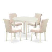 Casafoyer Boab5-Lwh-02 Boston 5 Piece Set Includes A Round Kitchen Table And 4 Light Beige Fabric Parsons Dining Chairs, Linen White, 42X42 Inch