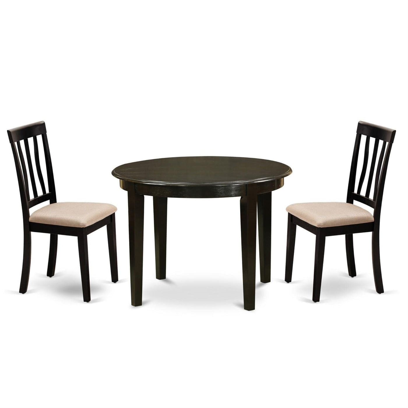Casafoyer Boan3-Cap-C 3 Piece Kitchen Table Set For Small Spaces Contains A Round Dining Table And 2 Linen Fabric Dining Room Chairs, 42X42 Inch, Cappuccino