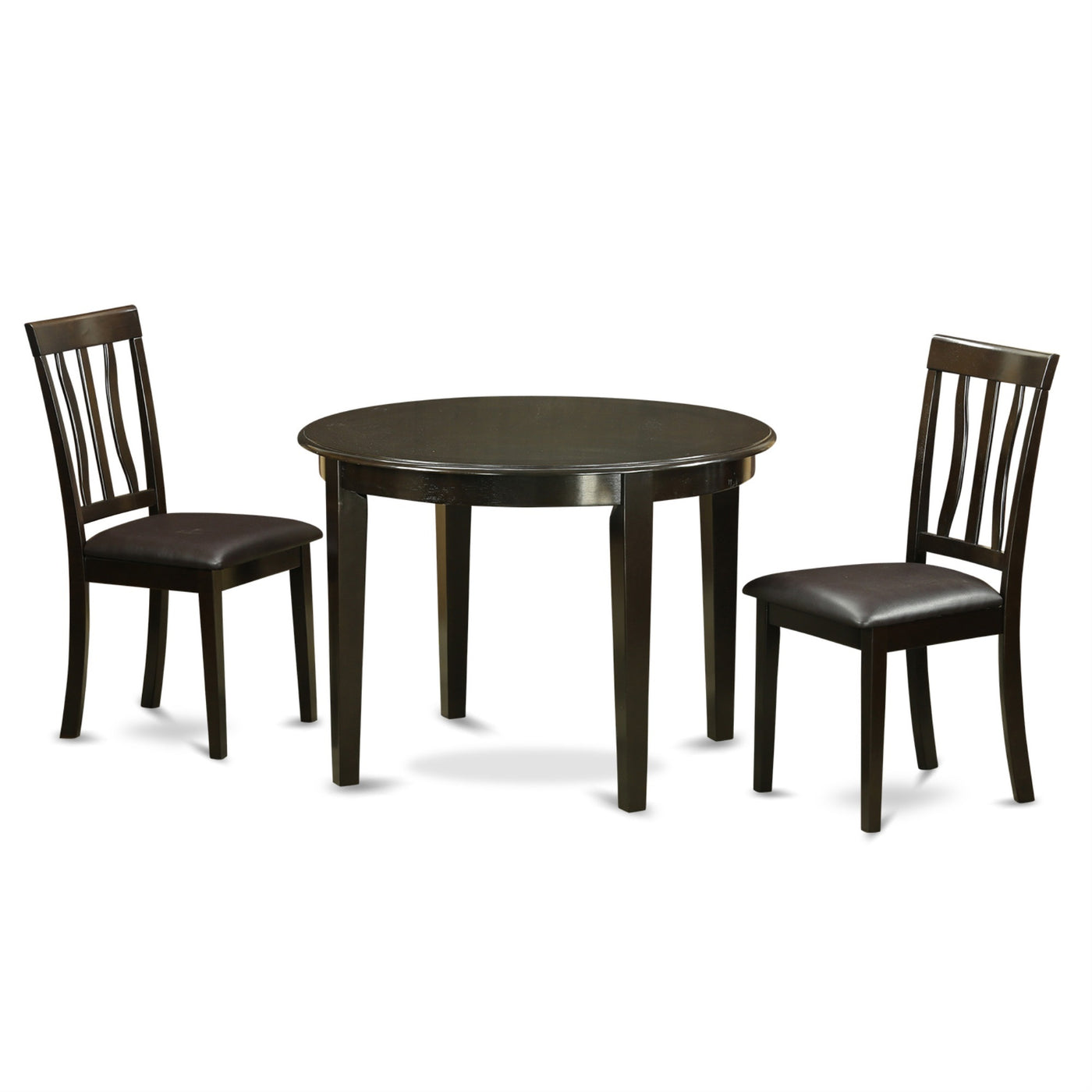 Casafoyer Boan3-Cap-Lc Boston 3 Piece Modern Set Contains A Round Table And 2 Faux Leather Kitchen Dining Chairs, Cappuccino