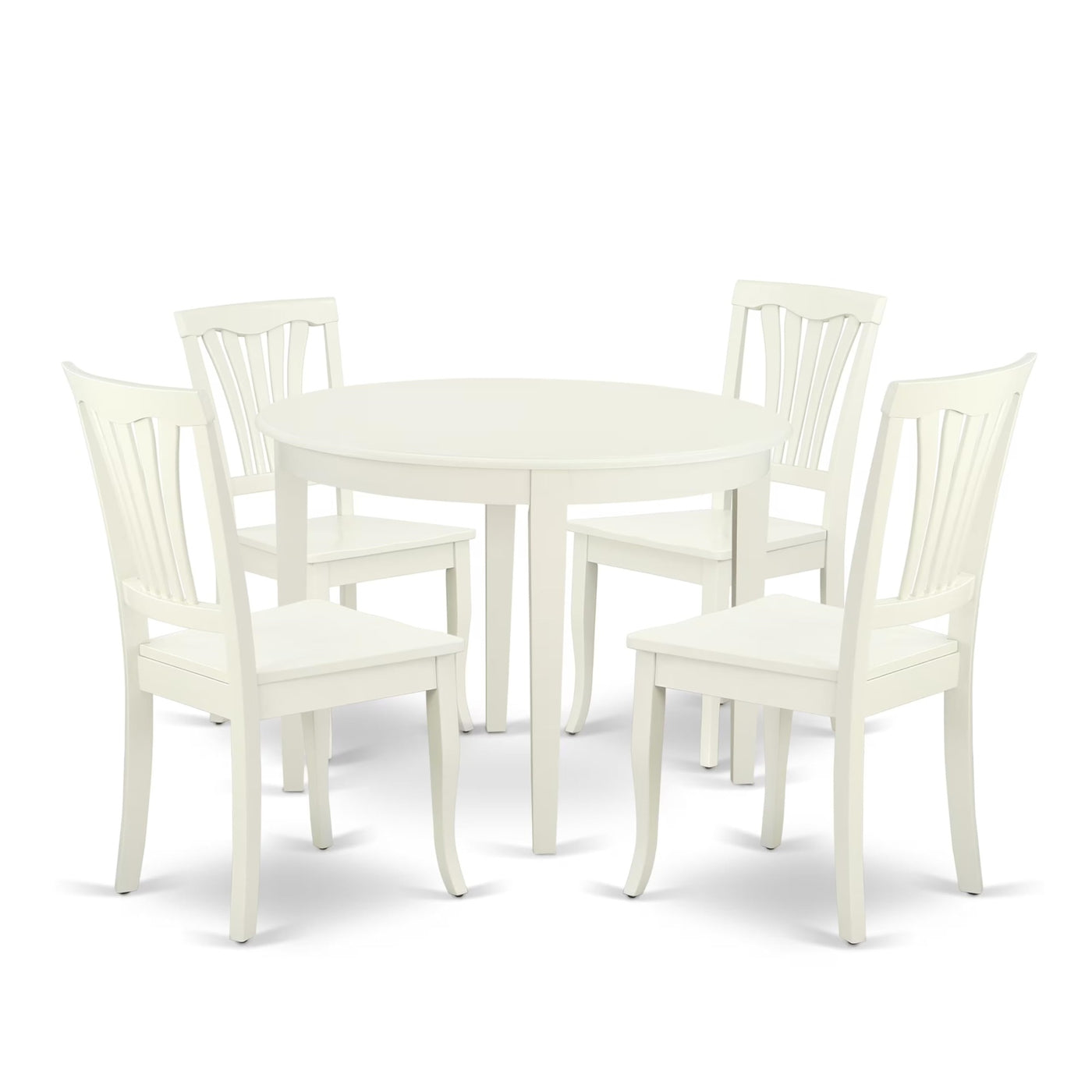 Casafoyer Boav5-Lwh-W Boston 5 Piece Room Set Includes A Round Kitchen Table And 4 Dining Chairs, Linen White, 42X42 Inch