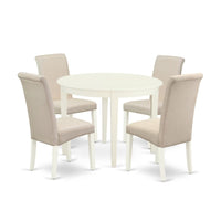 Boba5-Whi-01 Boba5-Whi-01 5Pc Dining Set Includes A Small Round Dinette Table And Four Parson Chairs With Cream Fabric, White Finish, Bring The Family Charm In The Dining Area With This Boba5-Whi-01 Dinette Set Which Highlights The Natural Elegance Of Asian Wood. A Cozy And Luxurious Linen White Color Offers Any Dining-Room A Relaxing And Friendly Feel With The Small Kitchen Table. With A Soft Rounded Bevel At The Edge Of The Table Top, This Well-Designed And Comfortable Dinette Table May Be Used For Hours At A Time. This Small Dining Table Requires A Very Little Space And Itd Be A Great Choice If You Are Struggling With Space In Your Dining Area. Made Up Of Rubber Wood, The Table Is Stable And Offers A Sturdy Finish. This Wonderful Dining Table Makes A Really Good Addition For All Kitchen Space And Corresponds All Sorts Of Dining-Room Concepts. You Need A Stylish And Affordable Kitchen Chair To Match Your Dining Table. The Barry Upholstered Parson Chair Is A Tasteful, Well-Made Seating Solution. This Dining Chair Features A Beautiful Stitched Exterior. Tall Back, Upholstery, Rolled Back, High-Density Foam Padding, Solid Hardwood Frame Construction, And Linen Upholstery Make These Kitchen Chairs Comfortable, Durable And Attractive. Whether You Use This Dinette Chair In Your Dining Room, Kitchen, Office Or Basement, It Is An Easy To Assemble And Stylish Answer To Your Seating Needs. The Standard Shape, Size And Design Makes The Dining Area Significantly Attractive. This Contemporary, Budget Friendly, Durable And Comfortable Dinette Set Can Be Good Choice If You Are Looking For A Great Dining Time Experience With Your Family Or Friends.Table Specifications:Material: Asian Hardwoodcolor: Linen Whitedimensions: Length 42; Width 42; Height 30Weight Capacity: 300 Lbschair Specifications:Frame Material: Asian Hardwoodfabric: Linen Fabriccushion Material: Foamfabric Color: Creamleg Color: Linen White Dimensions: Length 25. 5; Width 19; Height 42Weight Capacity: 300 Lbsincludes:1 X Rounded Table4 X Parson Chairn. B. : Hardware Package And Instruction Manual Is Located In/Under The Seat.