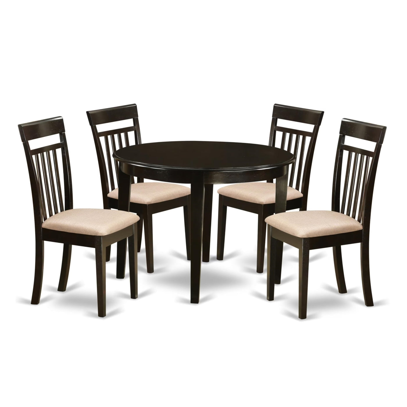 Casafoyer Boca5-Cap-C 5 Piece Modern Dining Table Set Includes A Round Kitchen Table And 4 Linen Fabric Kitchen Dining Chairs, 42X42 Inch, Cappuccino