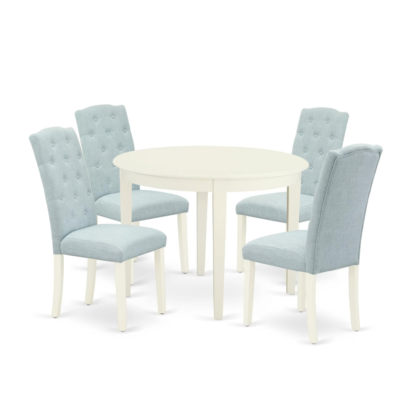 Casafoyer Boce5-Whi-15 Boston 5 Piece Modern Dining Set Includes A Round Kitchen Table And 4 Baby Blue Fabric Upholstered Parson Chairs, Linen White, 42X42 Inch