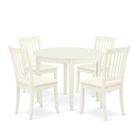 Casafoyer Boda5-Whi-C Boston 5 Piece Dinette Set For 4 Includes A Round Kitchen Table And 4 Fabric Upholstered Dining Chairs, Linen White