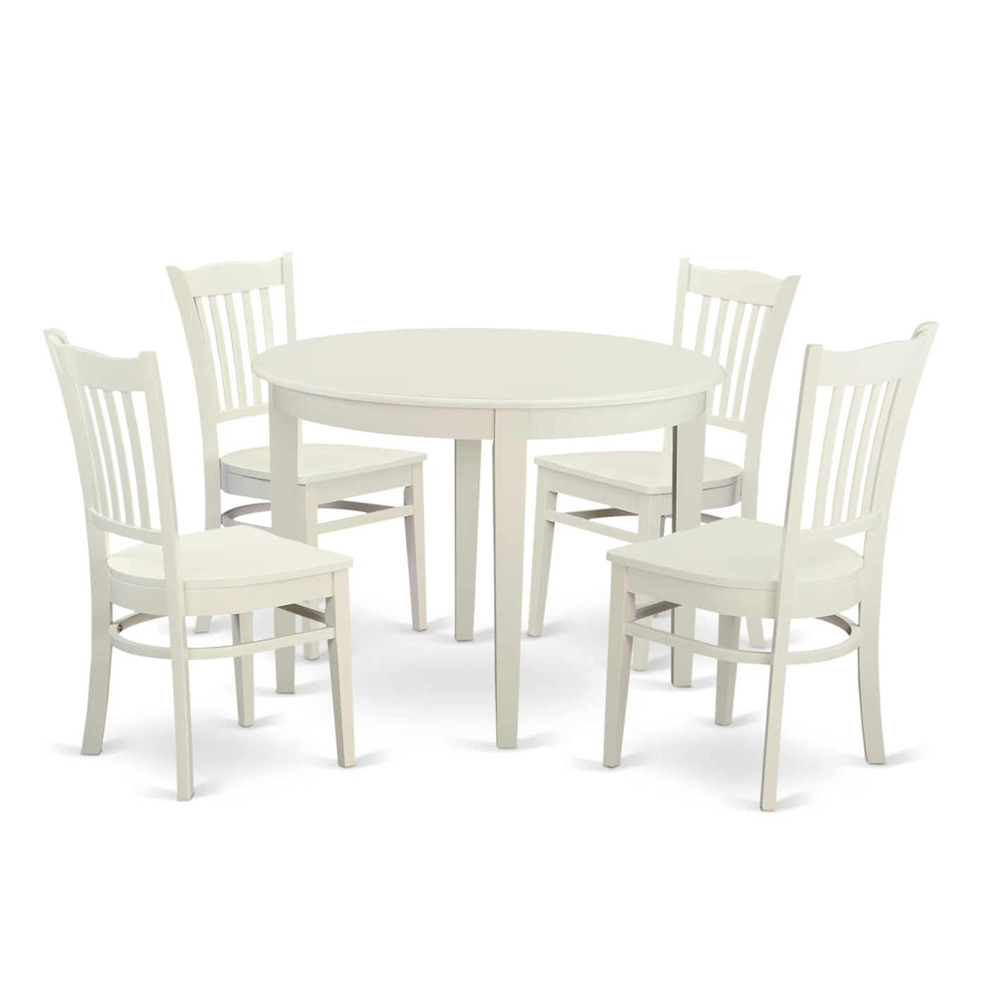 Casafoyer Bogr5-Whi-W 5 Piece Dining Room Furniture Set Includes A Round Kitchen Table And 4 Dining Chairs, 42X42 Inch, Linen White