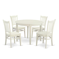 East West Furniture - Bogr5-Whi-W - 5 Piece Round Dining Table Settransform Your Dining Room Into A Delightful And Elegant Space With This Exquisite Wooden Kitchen Set