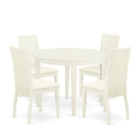 Casafoyer Boip5-Whi-C 5 Piece Kitchen Table & Chairs Set Includes A Round Dining Room Table And 4 Linen Fabric Upholstered Dining Chairs, 42X42 Inch, Linen White