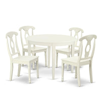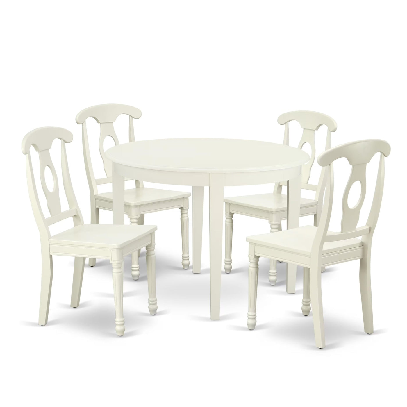 Casafoyer Boke5-Lwh-W Boston 5 Piece Kitchen Set For 4 Includes A Round Dining Room Table And 4 Solid Wood Seat Chairs, Linen White, 42X42 Inch