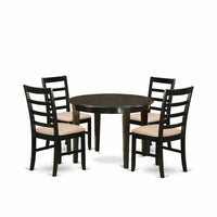 Casafoyer Bopf5-Cap-C 5 Piece Dining Room Table Set Includes A Round Wooden Table And 4 Linen Fabric Kitchen Dining Chairs, 42X42 Inch, Cappuccino