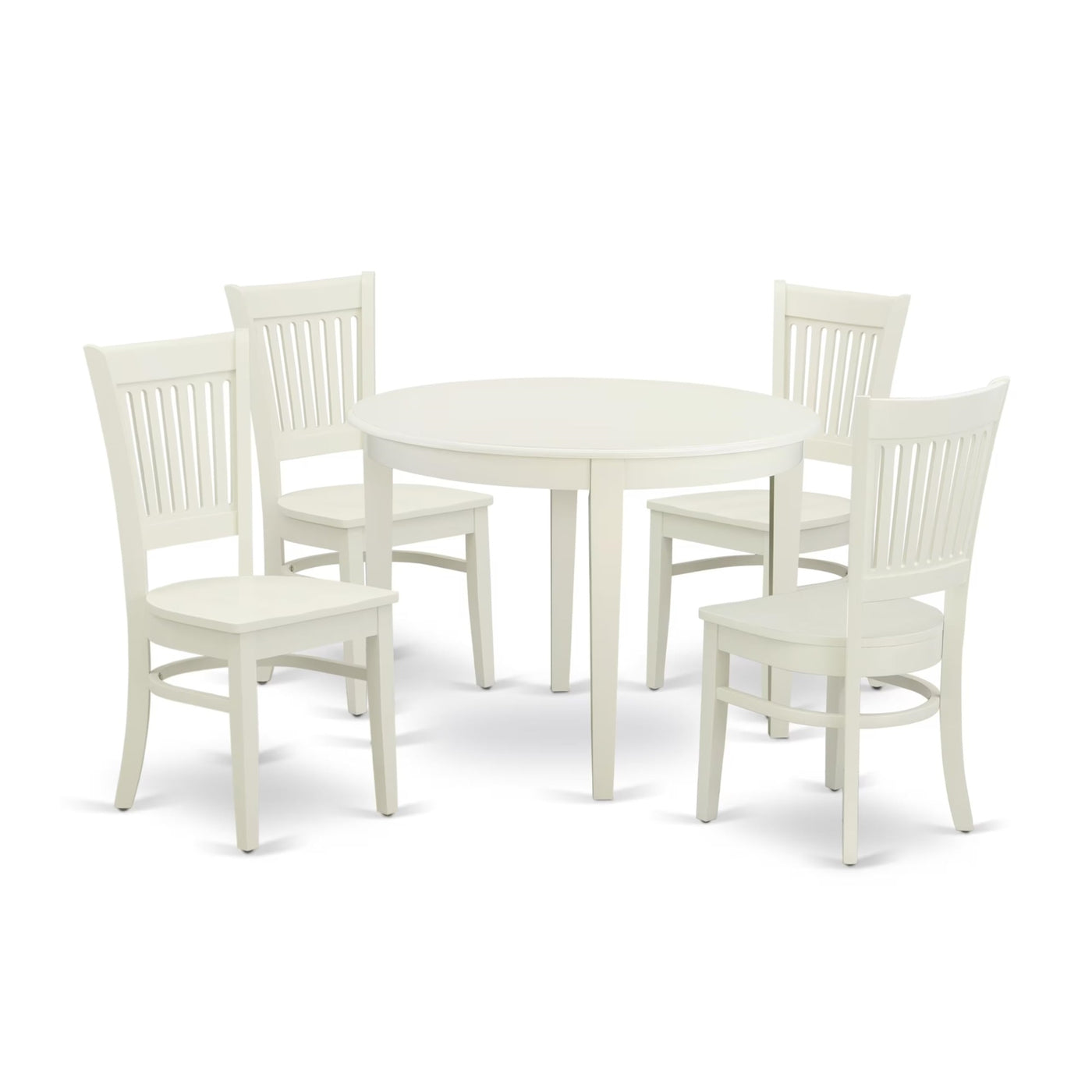 Casafoyer Boston 5 Piece Room Furniture Set Includes A Round Kitchen Table And 4 Dining Chairs, 42X42 Inch, Linen White
