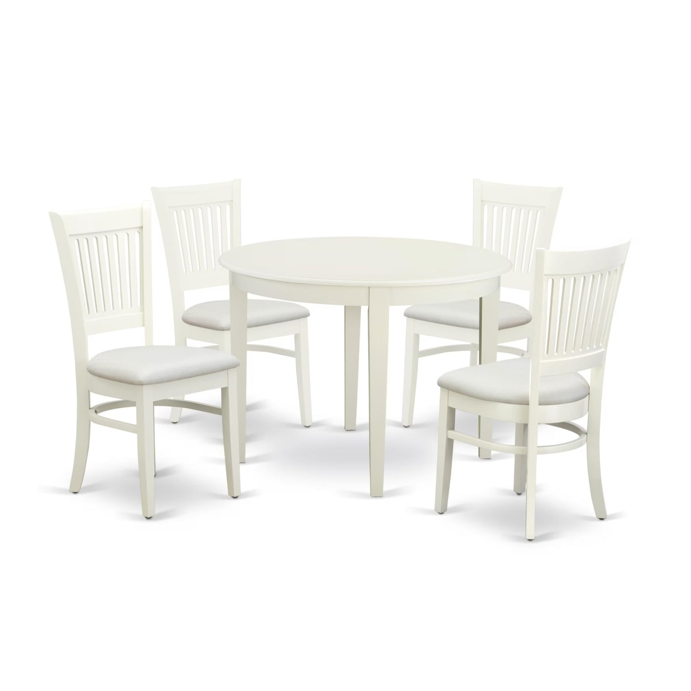 Casafoyer Bova5-Lwh-C 5 Piece Dinette Set For 4 Includes A Round Kitchen Table And 4 Linen Fabric Upholstered Dining Chairs, 42X42 Inch, Linen White