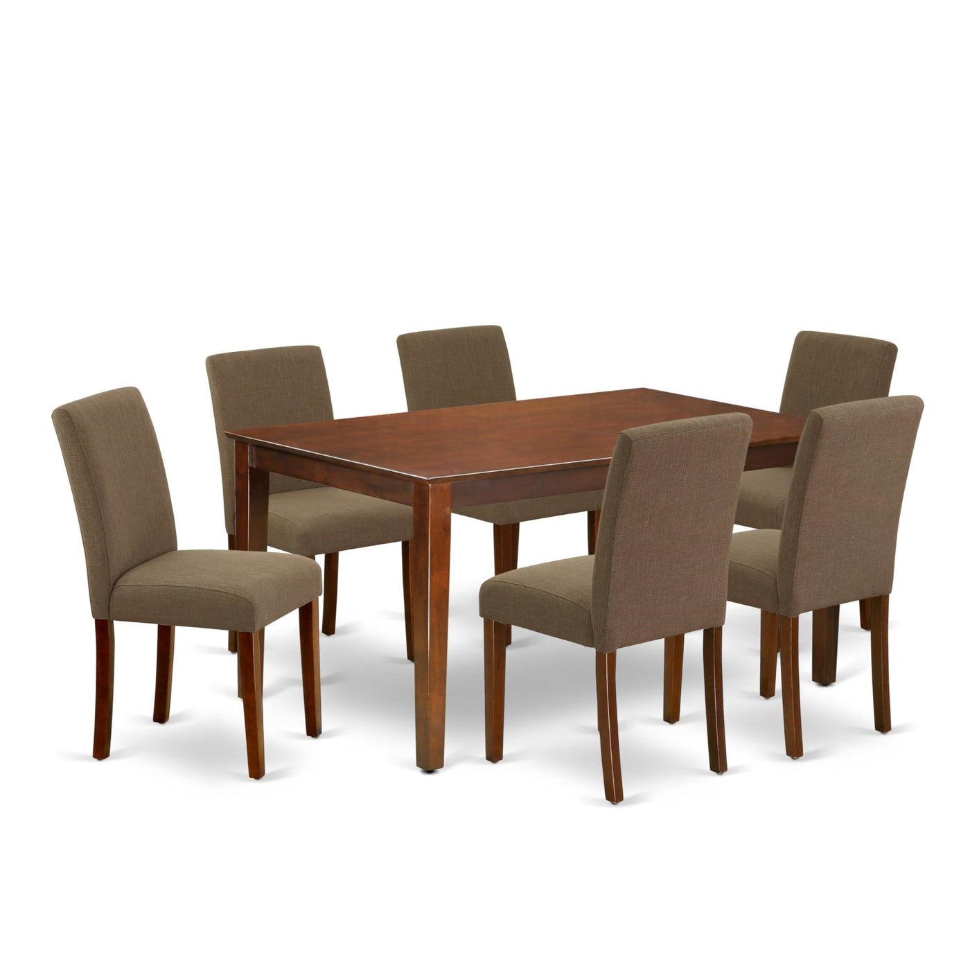 Casafoyer Caab7-Mah-18 Capri 7 Piece Modern Dining Set Consist Of A Rectangle Wooden Table And 6 Coffee Linen Fabric Upholstered Chairs, 36X60 Inch, Mahogany