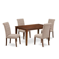 Casafoyer Cabr5-Mah-04 Kitchen Table Set - 4 Parson Chairs With Light Fawn Linen Fabric Seat And Button Tufted Back - A Rectangular Dining Table (Mahogany Finish)