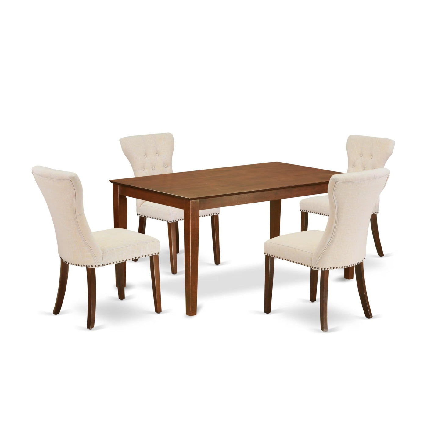 Casafoyer Caga5-Mah-32 Capri 5 Piece Set Includes A Rectangle Dining Room Table And 4 Light Beige Linen Fabric Upholstered Parson Chairs, 36X60 Inch