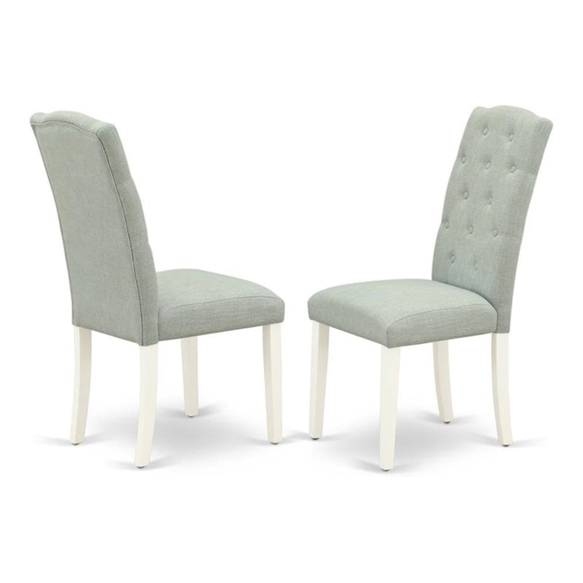 Casafoyer Cep2T15 Celina Parson Chairs - Button Tufted Baby Blue Linen Fabric Upholstered Dining Chairs, Set Of 2, Linen White