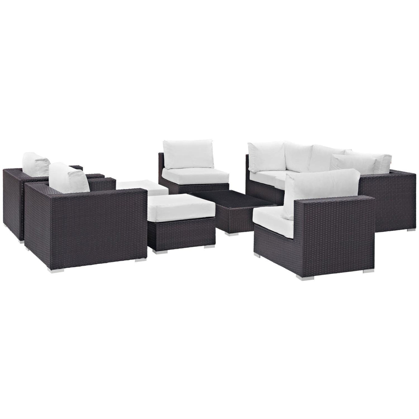 Casafoyer Convene Wicker Rattan 10-Piece Outdoor Patio Sectional Sofa Furniture Set In Espresso White