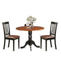 Casafoyer Dlan3-Bch-Lc 3 Piece Kitchen Table Set For Small Spaces Contains A Round Dining Room Table With Dropleaf And 2 Faux Leather Upholstered Chairs, 42X42 Inch, Black & Cherry