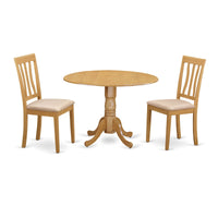 Casafoyer Dlan3-Oak-C 3 Piece Kitchen Table & Chairs Set Contains A Round Dining Room Table With Dropleaf And 2 Linen Fabric Upholstered Dining Chairs, 42X42 Inch, Oak