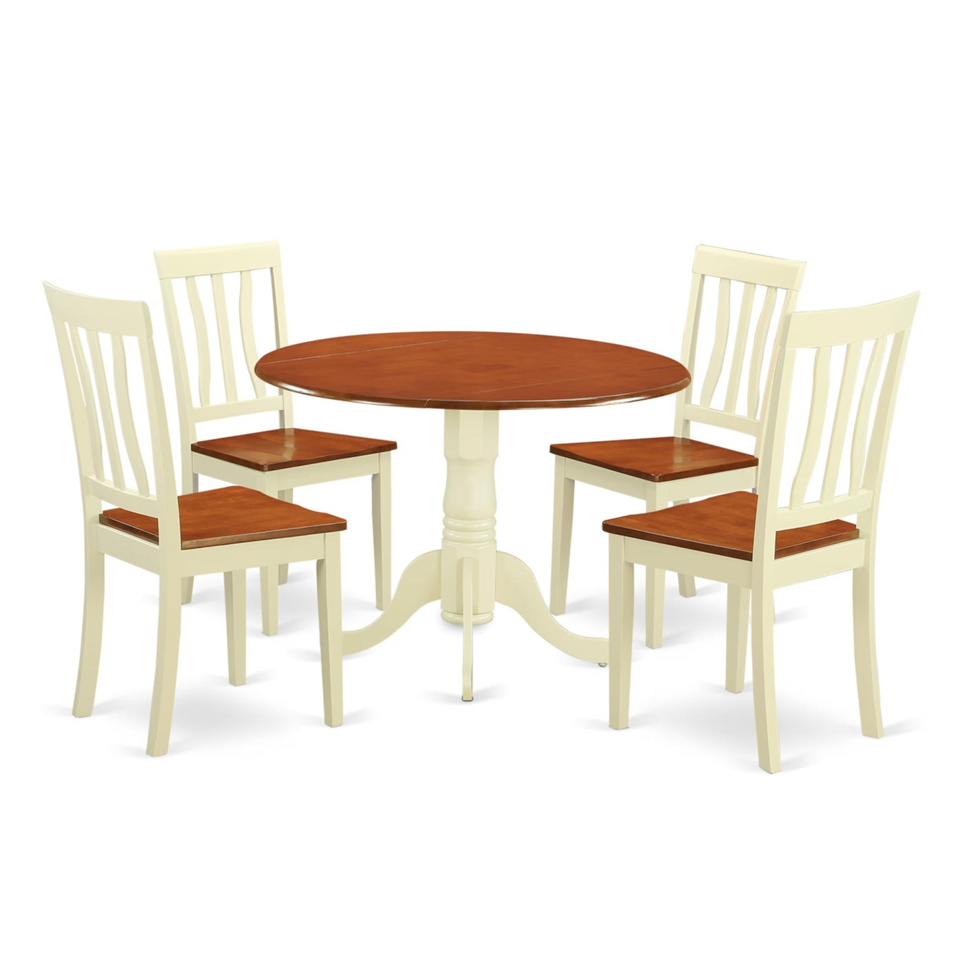 Casafoyer Dlan5-Bmk-W 5 Piece Kitchen Table & Chairs Set Includes A Round Dining Room Table With Dropleaf And 4 Solid Wood Seat Chairs, 42X42 Inch, Buttermilk & Cherry