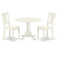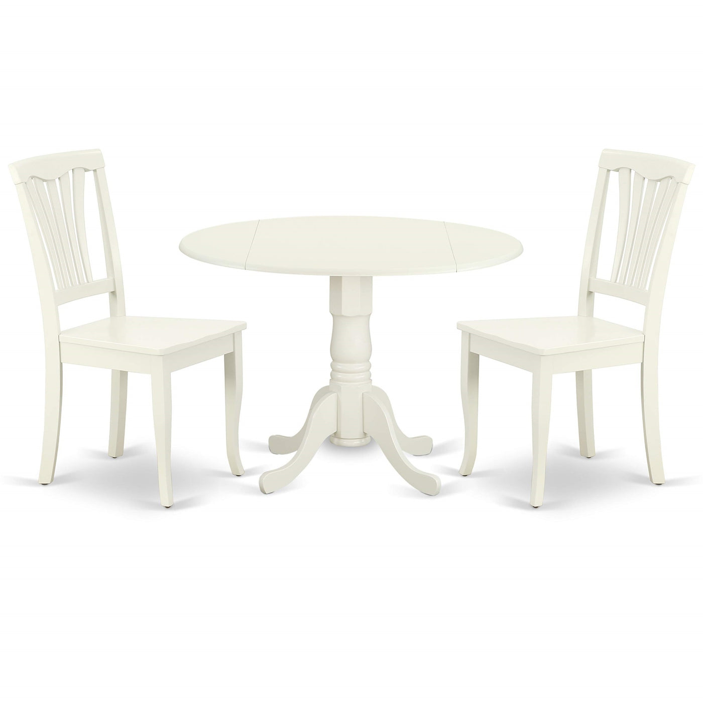 Casafoyer Dlav3-Lwh-W 3 Piece Dining Table Set For Small Spaces Contains A Round Dining Room Table With Dropleaf And 2 Wood Seat Chairs, 42X42 Inch, Linen White