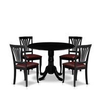 Casafoyer Dlav5-Blk-Lc 5 Piece Modern Dining Table Set Includes A Round Wooden Table With Dropleaf And 4 Faux Leather Upholstered Dining Chairs, 42X42 Inch, Black