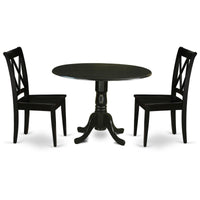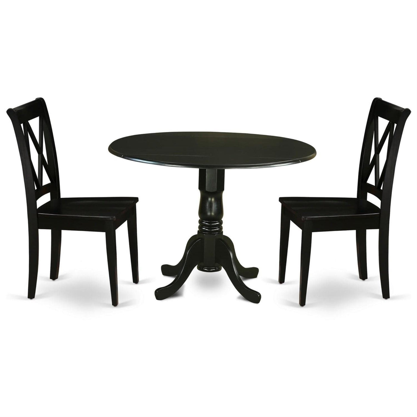 Casafoyer Dlcl3-Blk-W Dublin 3 Piece Kitchen Set For Small Spaces Contains A Round Dining Room Table With Dropleaf And 2 Solid Wood Seat Chairs, 42X42 Inch