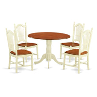 Casafoyer Dldo5-Bmk-W Dublin 5 Piece Kitchen Set For 4 Includes A Round Room Table With Dropleaf And 4 Dining Chairs, 42X42 Inch, Buttermilk & Cherry