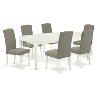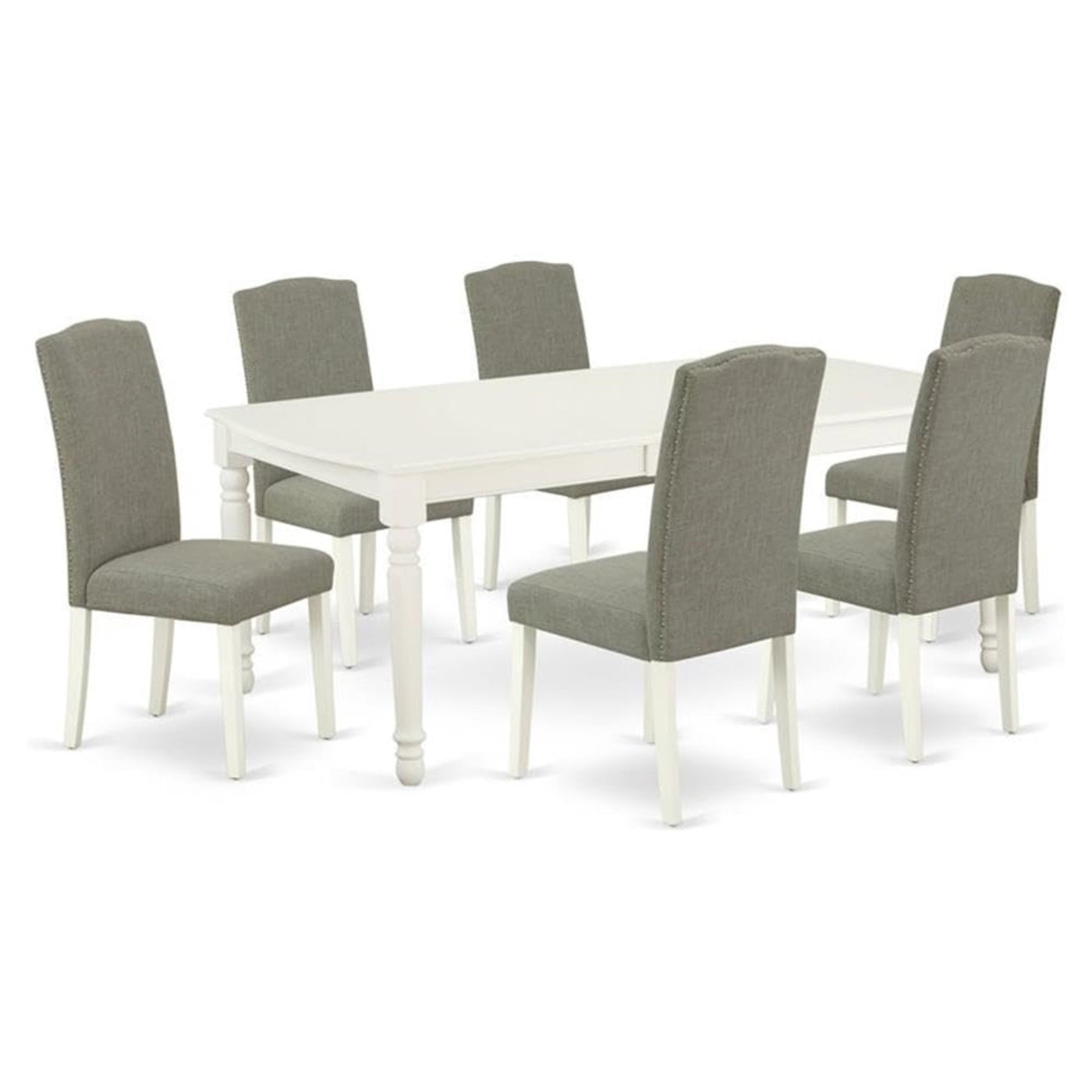 Casafoyer Doen7-Lwh-06 7 Piece Dining Room Set Consist Of A Rectangle Wooden Table With Leaf And 6 Dark Shitake Linen Fabric Parson Dining Chairs, 42X78 Inch, Linen White