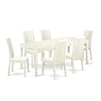 Doip7-Lwh-W Doip7-Lwh-W 7-Piece Table And Chair Set With One Dover Dining Room Table And 6 Dining Room Chairs In A Linen White Finish, With This Particular Dining Set You Can Contribute That Special Impression For Dining Room Elegance To Both Traditional And Fashionable Decorating. A Beautiful Set Of 6 Comfortable Kitchen Chairs Which Could Be Positioned In Your Dining Area And Small Space. Both The Table And The Chairs Were Made Of Pure Rubber Wood That Is Perceived As A Solid Wood And Is Also More Commonly Known As Asian Harwood. You Can Dine With Peace Of Mind Knowing That The Table You Are Eating On Is Made Of 100% Hardwood. There Is No Medium- Density Fiberboard! Give Your Dcor A Special Touch And And Add This Set To Your Kitchen Or Dining Room To Complete That Unique Look That You Have Always Wanted, Which Will Impress Whoever Walks In.