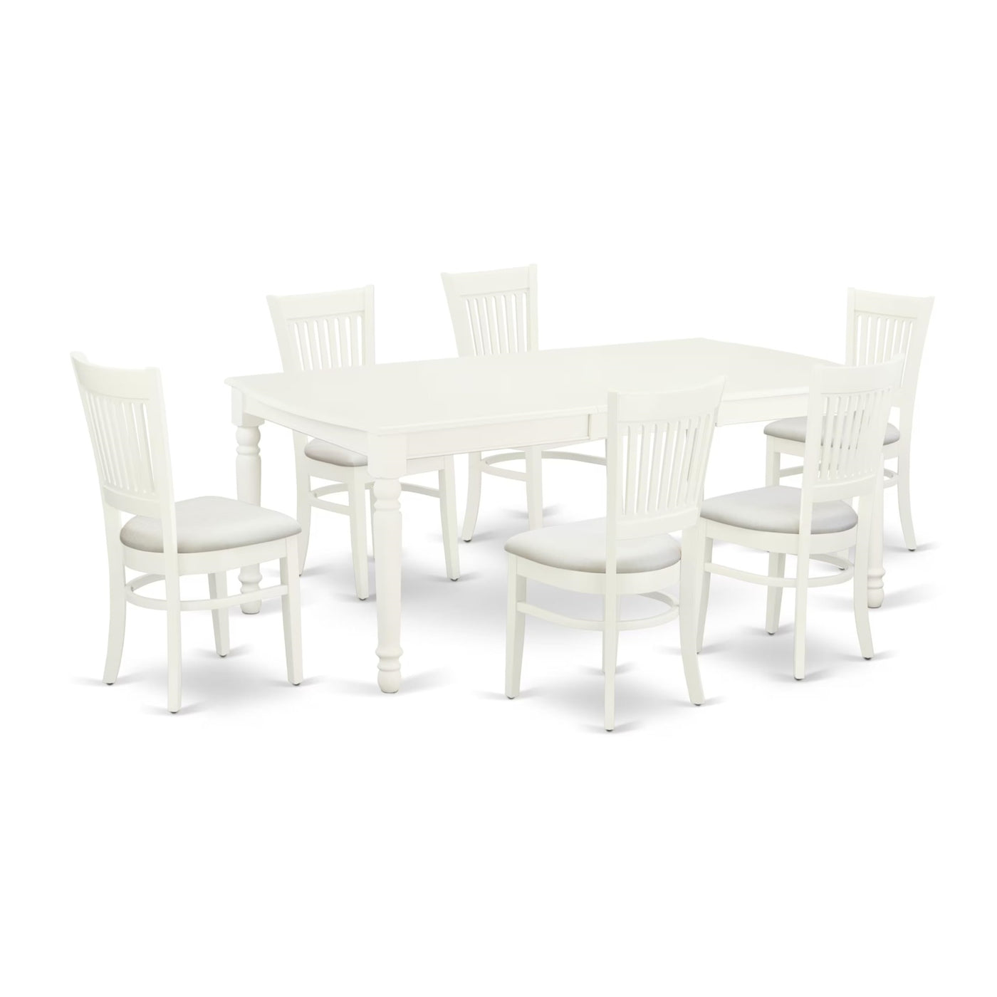 Dova7-Lwh-C East West Furniture Dova7-Lwh-C 7-Pc Mid Century Dining Table Set-6 Dining Chairs With Slatted Back And Linen Fabric Seat-A Butterfly Leaf Kitchen Table With Rectangular Top And 4 Legs- Linen White Finish, East West Furniture 7-Pc Dinette Set With 6 Amazing Dining Room Chair And Rectangular Kitchen Dining Table With Butterfly Leafthis Kitchen Set Includes 6 Gorgeous Dining Chairs And An Amazing 4 Legs Dining Table. The Dining Room Set Provides A Linen White Solid Wood Modern Dining Table And Fantastic Linen White Wooden Dining Chairs That Will Enhance The Elegance To Your Dining Room. This Rectangular Small Table Is Constructed From Superior Quality Rubber Wood. These Mid-Century Dining Chairs Have Manufactured From Superior Quality Wood That Can Endurance To 300Lbs Weight. This Rectangular Dinette Set Is Colored With A Good Quality Linen White Finish. You Can Clean This Modern Dinette Set Easily With Any Furniture Clearance. This Kitchen Table Set Assembles Quickly Because Of Its Simple Design. You Can Put Together This Wood Dinette Set One Place To Another Quickly. The Kitchen Table Set Is One Of The Most Important Pieces Of Furniture In Your House. It Not Only Becomes The Place To Eat Meals, But It'S Where You End Up Working On Vegetable Cut And Spending Time With Family And Friends. You Can Also Use It For Casual Home Parties. That'S Why It'S Important To Find A Mid Century Dining Table Set That Matches Your Individuality And Uses The Space Wisely. The Options Are Endless, So It'S Important To Pick What Works Best For You. If You'Re Looking To Bring A New Look To Your Kitchen Or Dining Room, This Mid Century Dining Table Set Might Be The Perfect Choice. Bring A Rustic, Classy Look To Your Dining Area With This Set That Seat 6 People Around The Small Table. Just Because You Have A Small Area Or For Your Wood Dining Table Doesn'T Mean You Have To Sacrifice On Quality Or Look. Keep Enjoying With East West Furniture!Features:Wood Dining Chairs Frame Material: Rubber Woodmodern Dining Table Frame Material: Asian Woodtable Top And Legs Color: Linen White Finishchair Legs And Back Color: Linen White Finishchair Seat Material: Linen Fabric Seattable Top Style: Rectangular Topchair Back Style: Slatted Backdimension Of Dining Room Table: Length 60/78; Width 42; Height 30.Dimension Of Dining Room Chair: Width 20; Depth 17; Height 37.Included In Package: 6 Amazing Kitchen Chairs And A Gorgeous Breakfast Table.