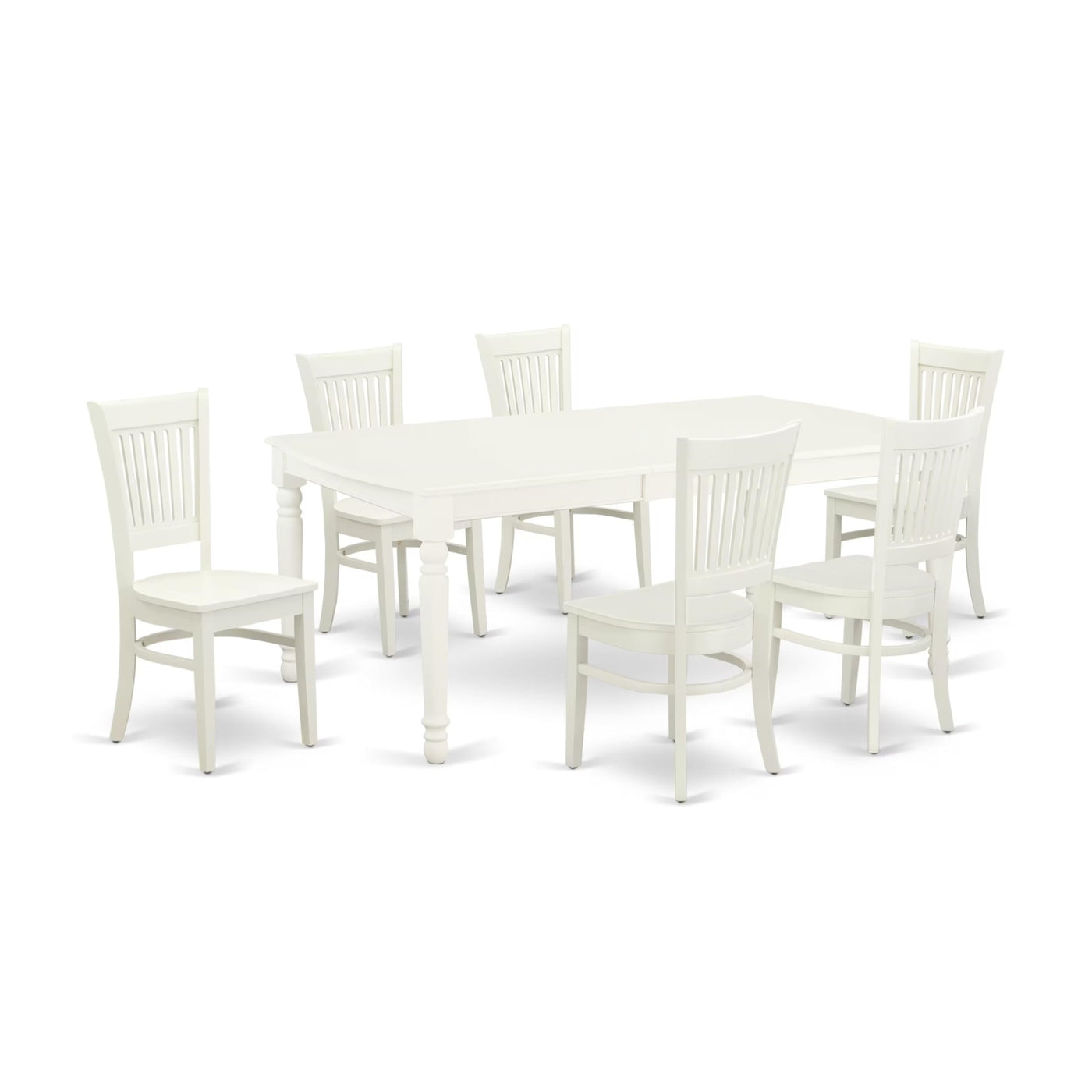Casafoyer Dova7-Lwh-W Dover 7 Piece Set Consist Of A Rectangle Dining Room Table With Leaf And 6 Wood Seat Chairs, 42X78 Inch