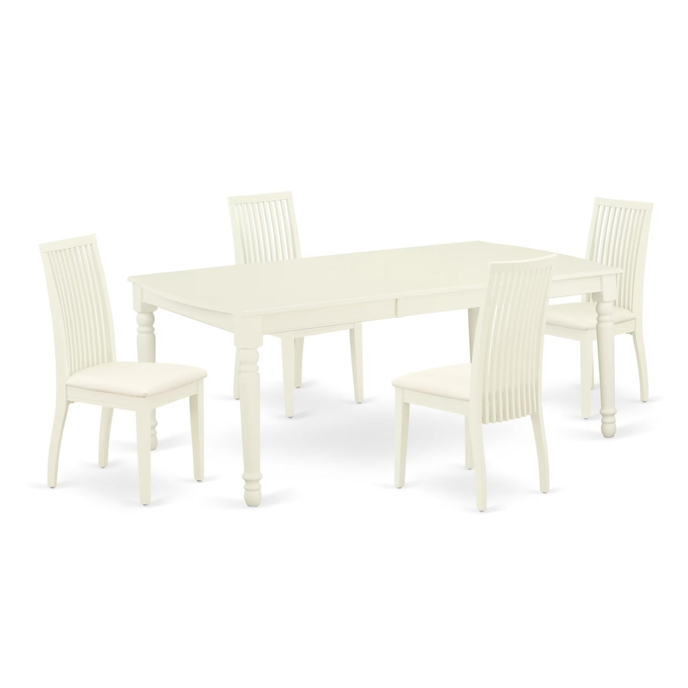 Casafoyer Dover 5 Piece Room Set Includes A Rectangle Kitchen Table With Leaf And 4 Fabric Upholstered Dining Chairs, 42X78 Inch, Linen White