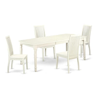 Casafoyer Dover 5 Piece Set Includes A Rectangle Dining Table With Leaf And 4 Kitchen Chairs, 42X78 Inch, Linen White