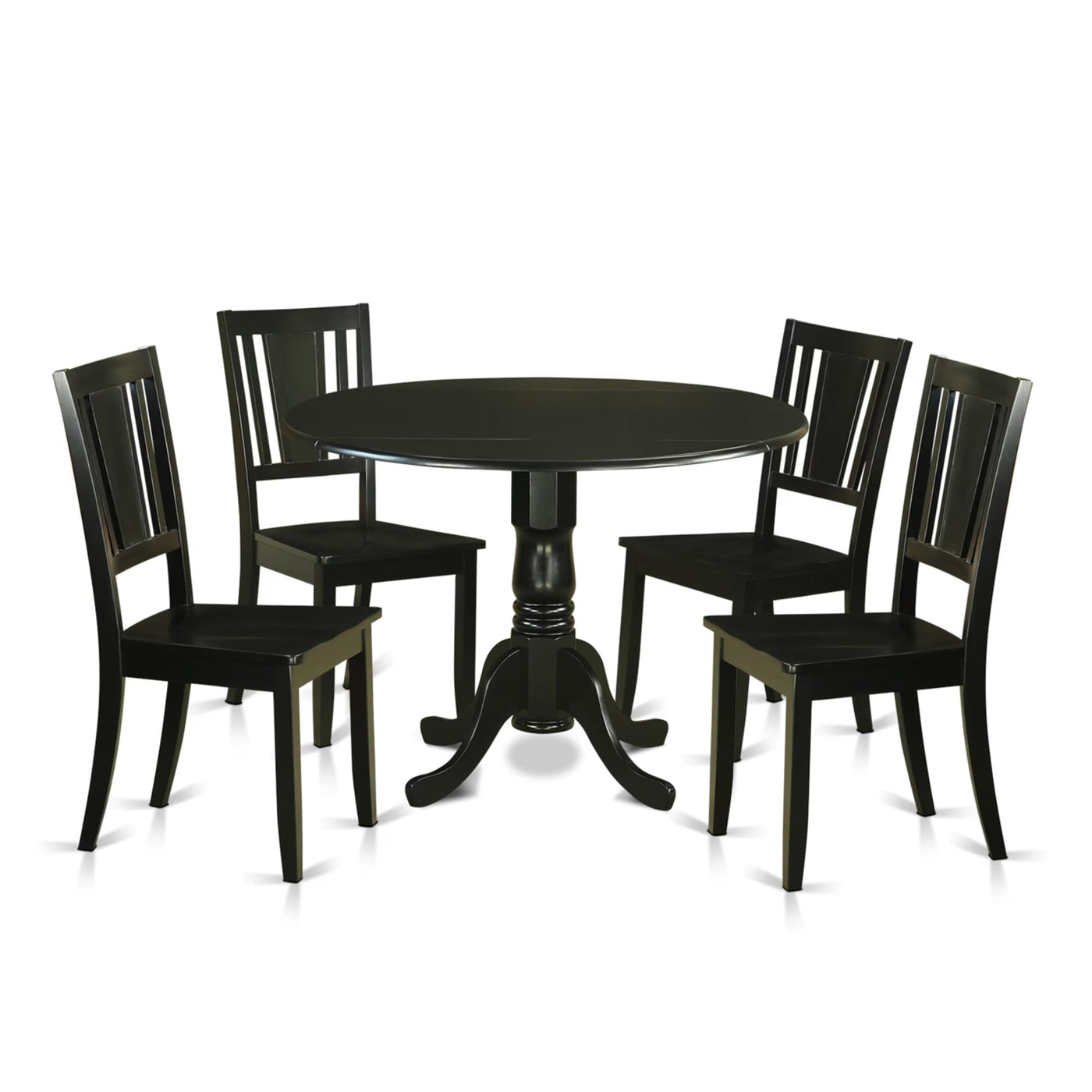 Casafoyer Dublin 5 Piece Dining Set For 4 Includes A Round Kitchen Table With Dropleaf And 4 Dinette Chairs, 42X42 Inch, Dldu5-Blk-W