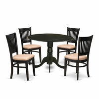 Casafoyer Dublin 5 Piece Dining Set For 4 Includes A Round Kitchen Table With Dropleaf And 4 Linen Fabric Upholstered Dinette Chairs, 42X42 Inch, Black
