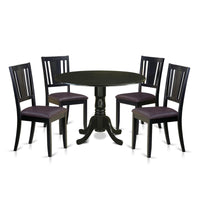 Casafoyer Dublin 5 Piece Modern Set Includes A Round Wooden Table With Dropleaf And 4 Faux Leather Kitchen Dining Chairs, 42X42 Inch, Dldu5-Blk-Lc