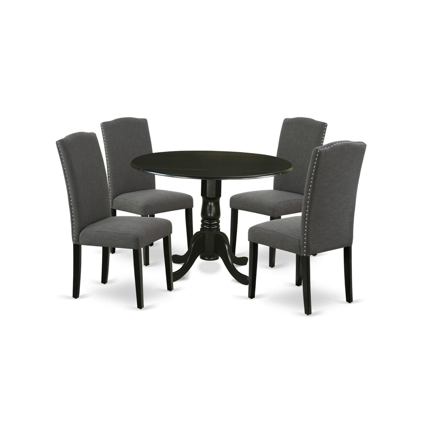 Casafoyer Dublin 5 Piece Set Includes A Round Dining Room Table With Dropleaf And 4 Dark Gotham Linen Fabric Upholstered Parson Chairs, 42X42 Inch, Dlen5-Blk-20